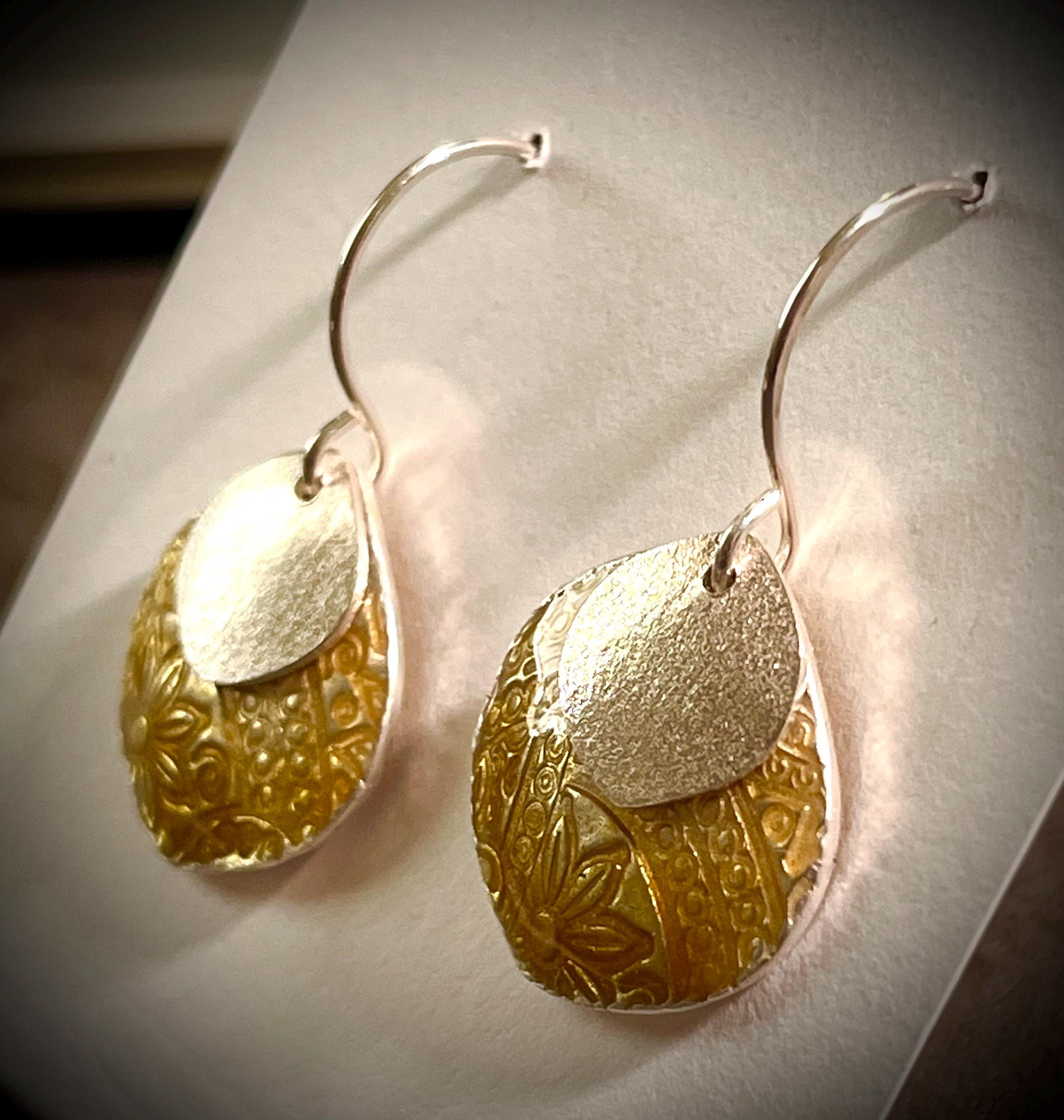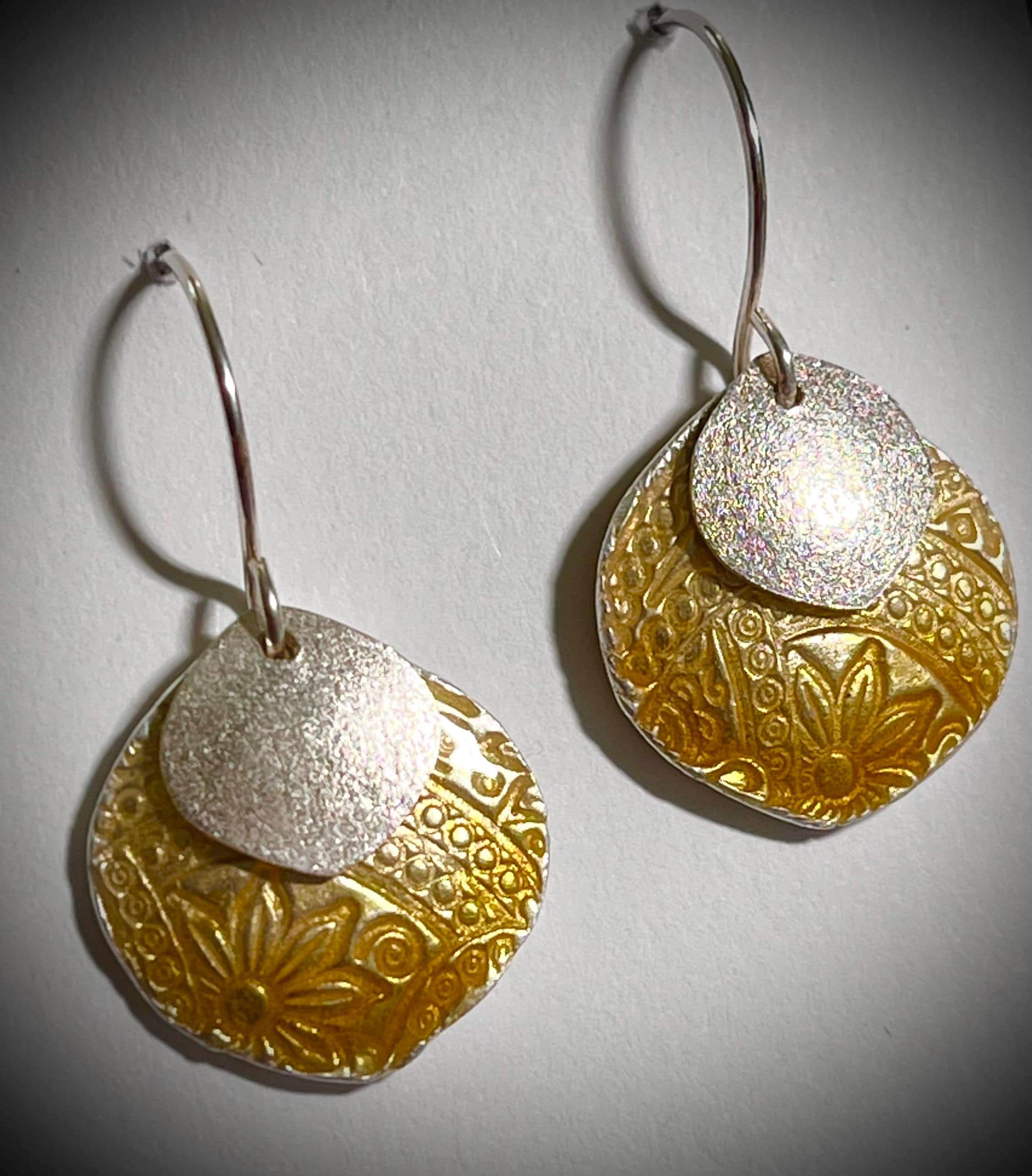 Fine silver and enamel “petal” earrings. Adorned with a sterling silver petal charm. Ear wires are handcrafted in sterling silver. Choose for your everyday look or add to your outfit for that special pop of color.