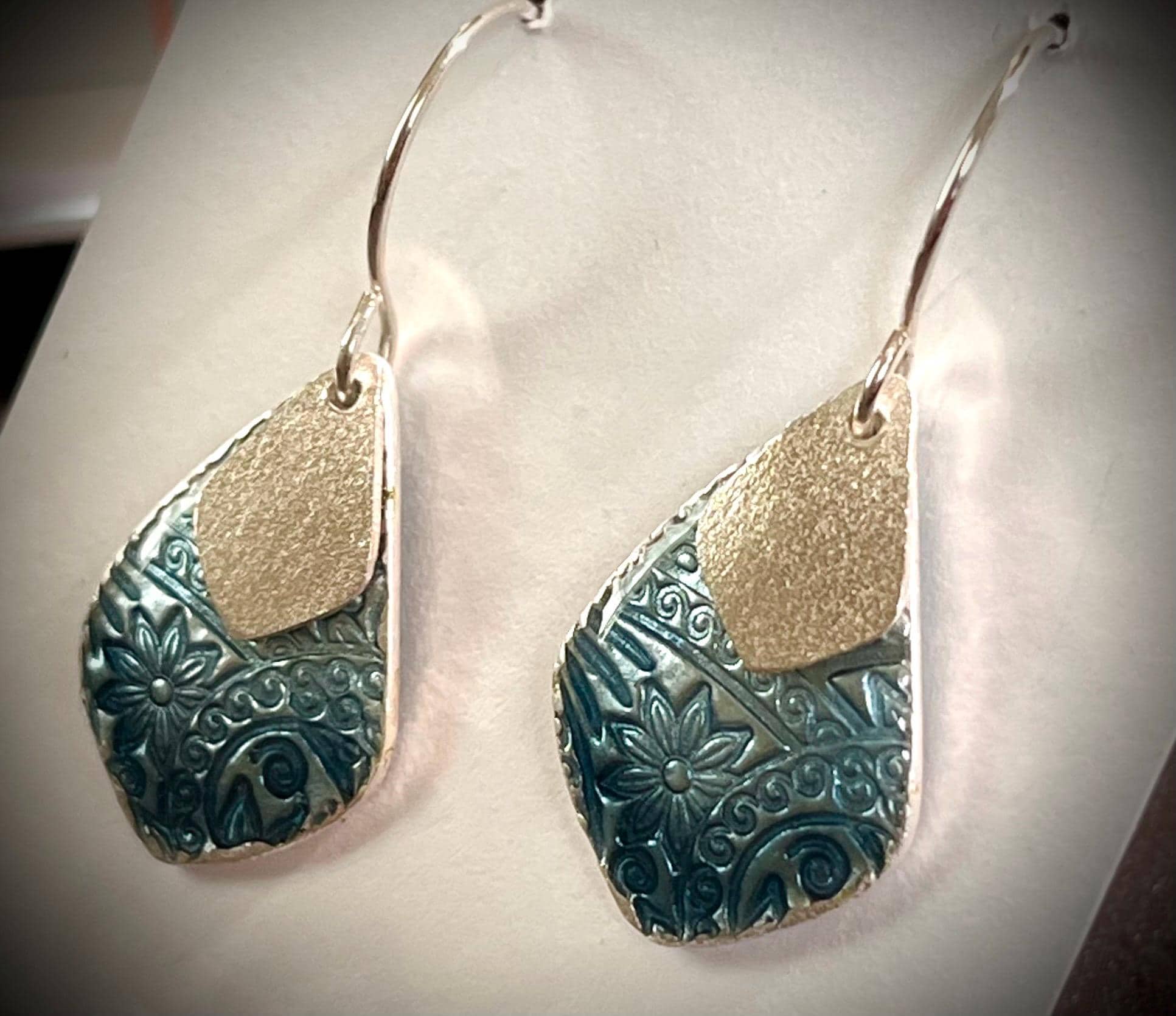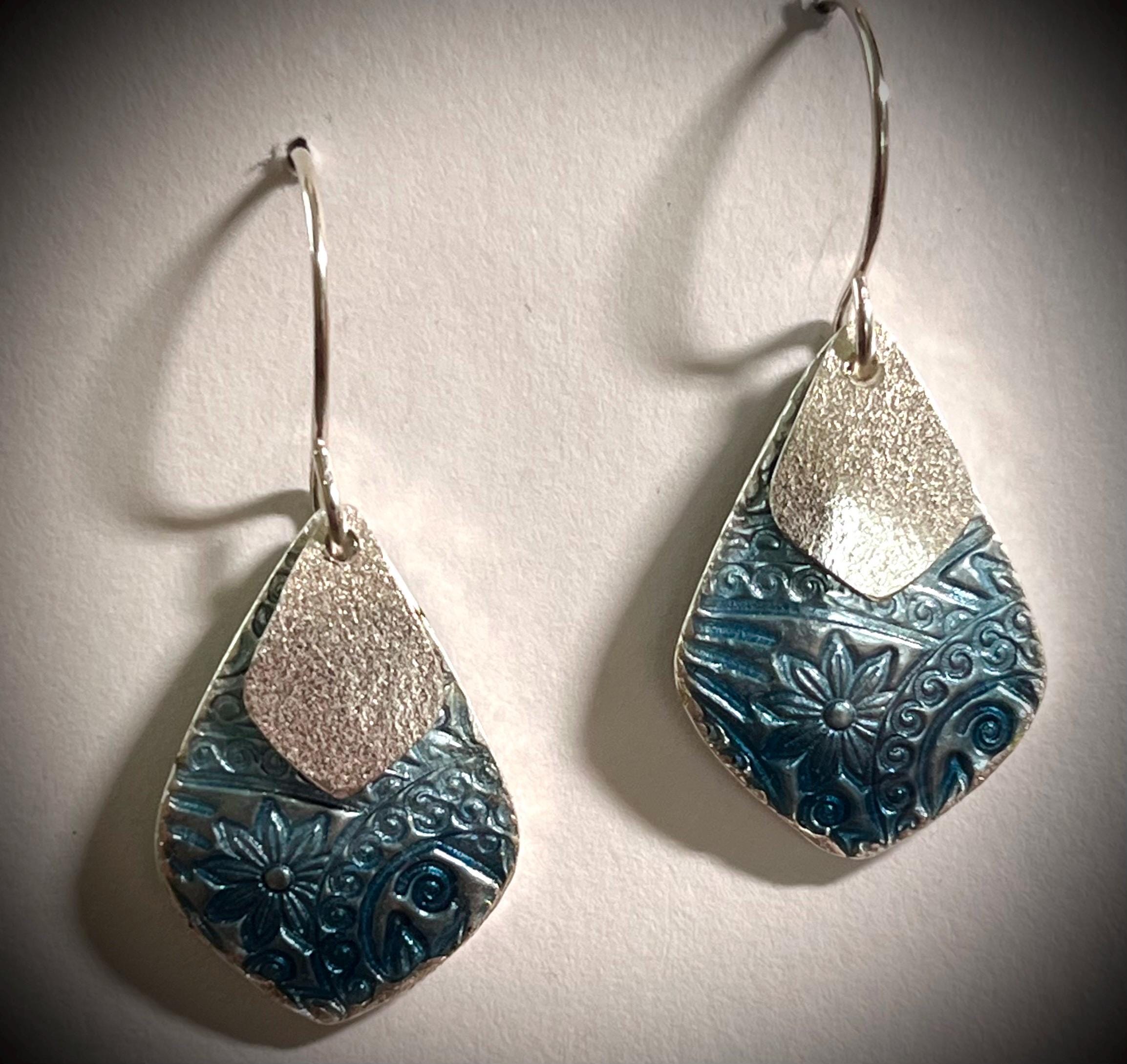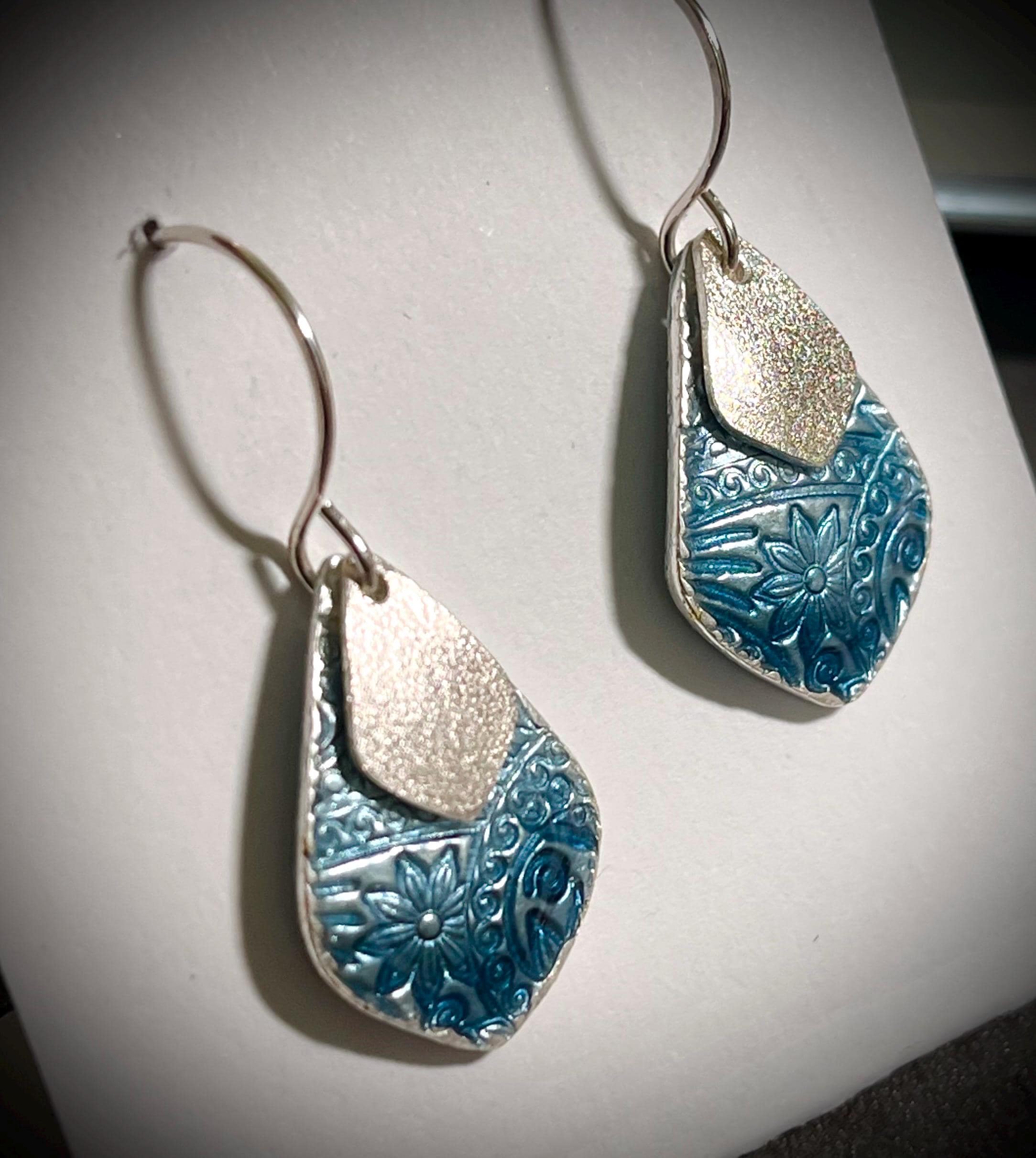 Fine silver and enamel earrings. Adorned with a sterling silver charm. Ear wires are handcrafted in sterling silver. Choose for your everyday look or add to your outfit for that special pop of color.